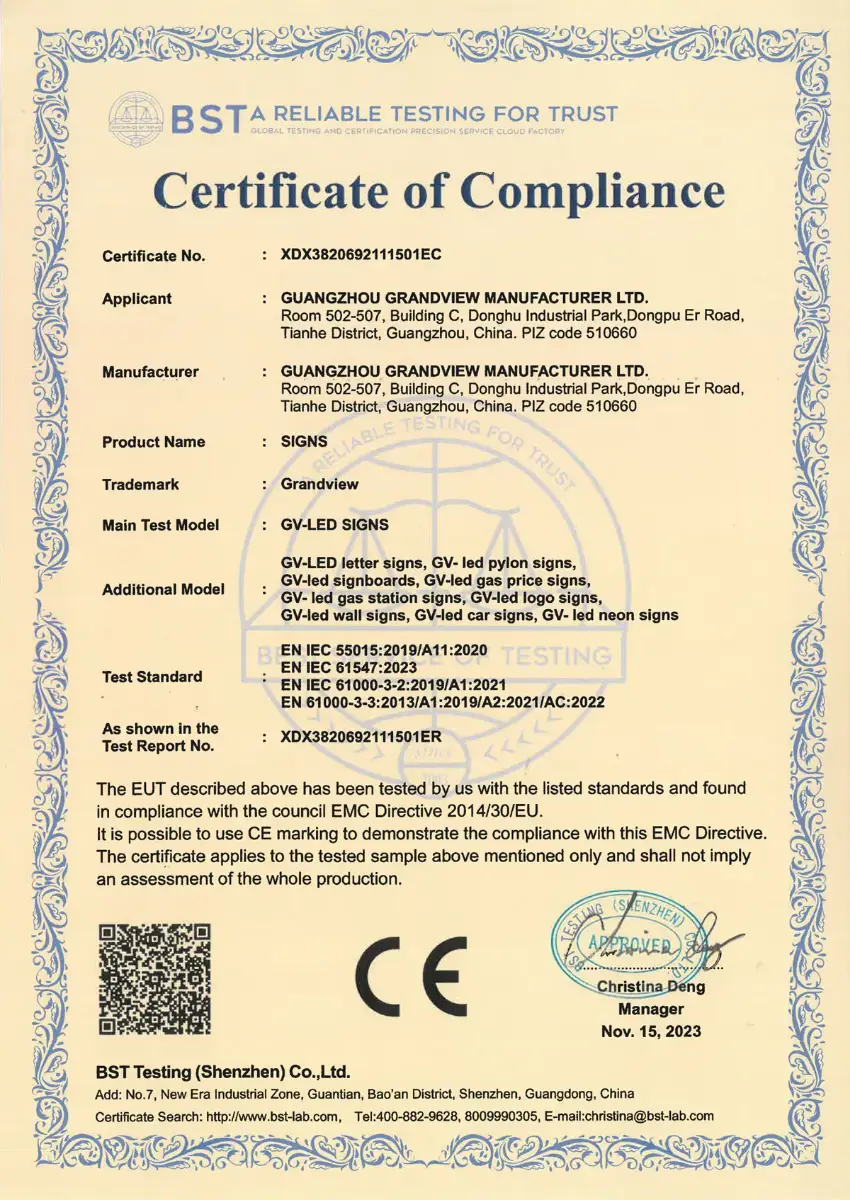 Grandview Sign Factory is a premier custom sign manufacturer dedicated to bringing your brand vision to life. Established in 2002, we have grown into a trusted partner for businesses worldwide, providing comprehensive signage solutions with over 20 years of expertise.