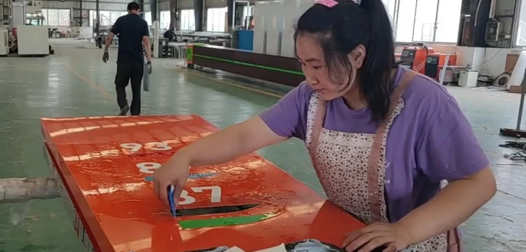 Based on customer’s requirement, stick the correct vinyl film on face, painting carefully and evenly