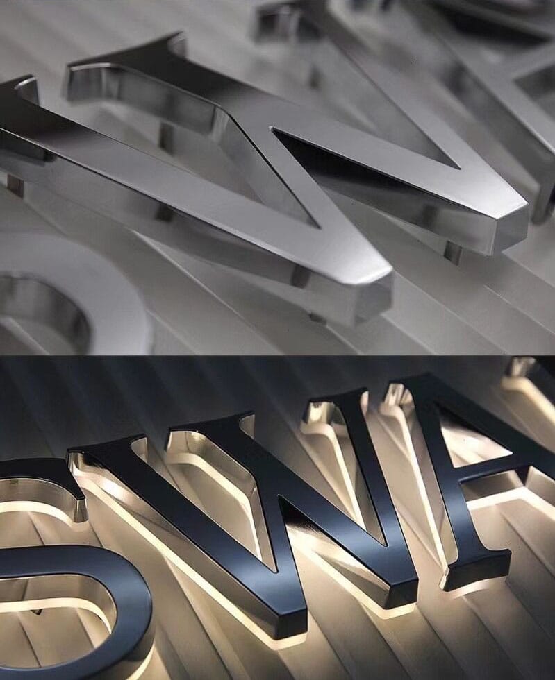 Project a sophisticated and high-end image for your business with premium solutions from our Stainless Steel Backlit Letter Factory. Also known as ‘Halo Lit’ or ‘Reverse Channel Letters,’ these signs create a stunning aura of light around each character, offering a distinct alternative to standard front-lit signs. As showcased in the featured ‘Bowl’ and luxury logo examples, we specialize in crafting 3D stainless steel backlit signs that combine architectural durability with elegant aesthetics. Each letter is precision-fabricated from 304 or 316-grade stainless steel with a brushed or polished finish, then fitted with a translucent acrylic backer to diffuse the light evenly on the wall. Powered by reliable MeanWell transformers and certified with CE/RoHS/UL standards, our signs are IP65 waterproof and built to maintain their luxurious glow in any outdoor environment.
